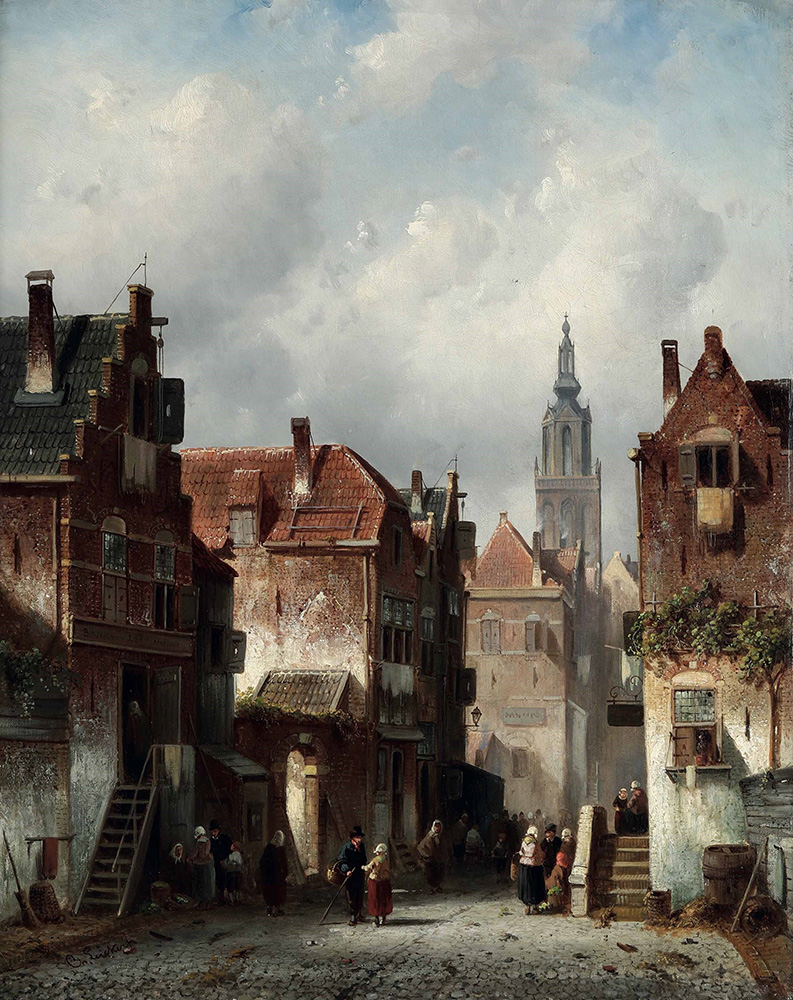 Leickert Charles Henri Joseph, Scorcio di strada cittadina con figure