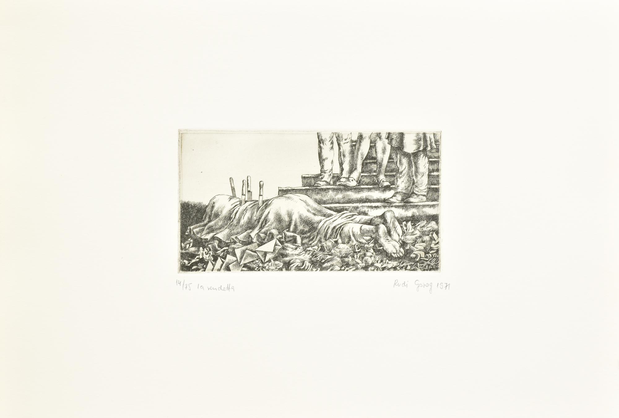 Rudi Gorog LA VENDETTA incisione su carta Fabriano, battuta cm 11x20, su...