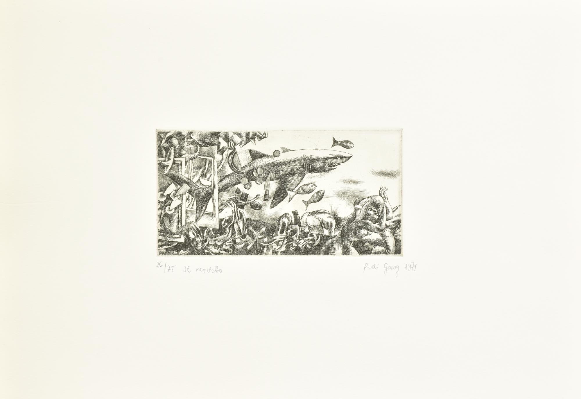 Rudi Gorog IL VERDETTO incisione su carta Fabriano, battuta cm 10x20, su...