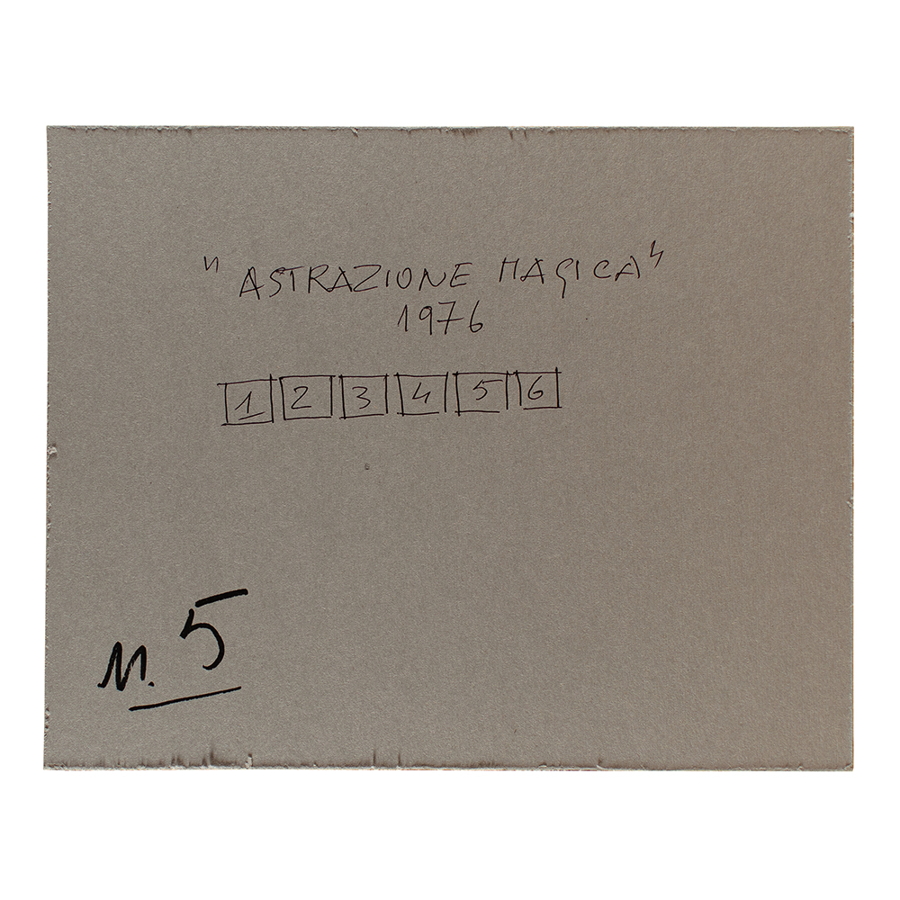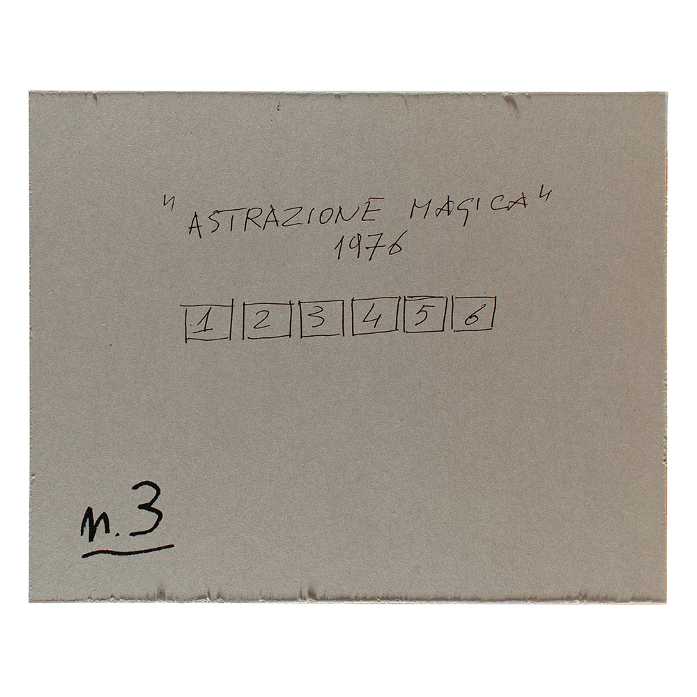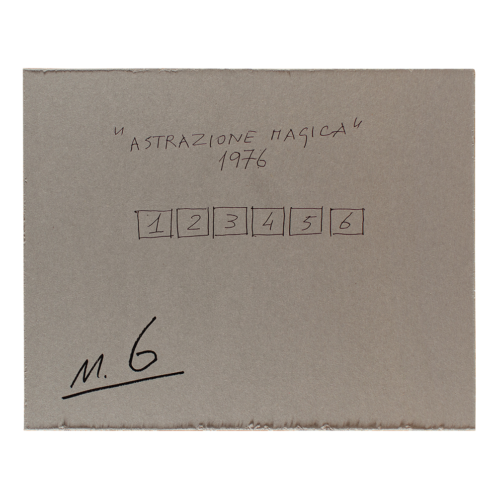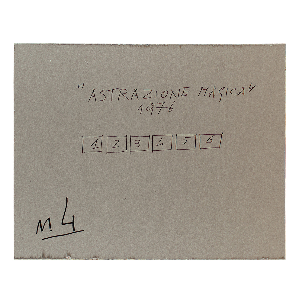 Le altre foto che compongono l’opera sono titolate e datate al verso: “Astrazione magica” 1976