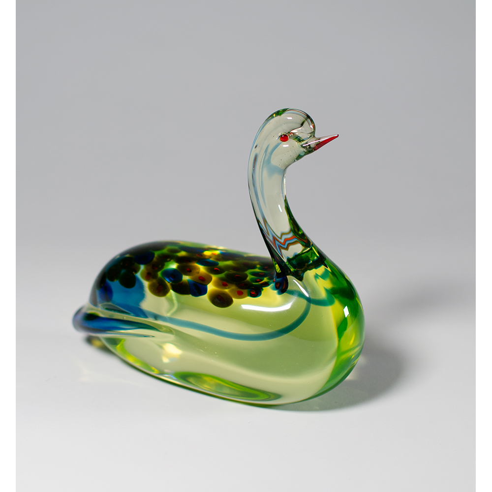 Cigno in vetro sommerso nei toni del verde, lunghezza cm 24,5.