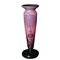 Vaso “Dahlia” in vetro a più strati con decorazione a rilievo incisa all’acido a guisa di dalie nei toni del viola e dell’ametista su fondo screziato a polveri policrome rosa, 1925 - 1927 circa, altezza cm 28.