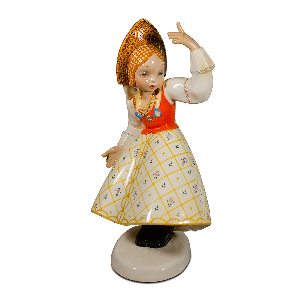 Scultura in ceramica policroma “Russa”, altezza cm 43.