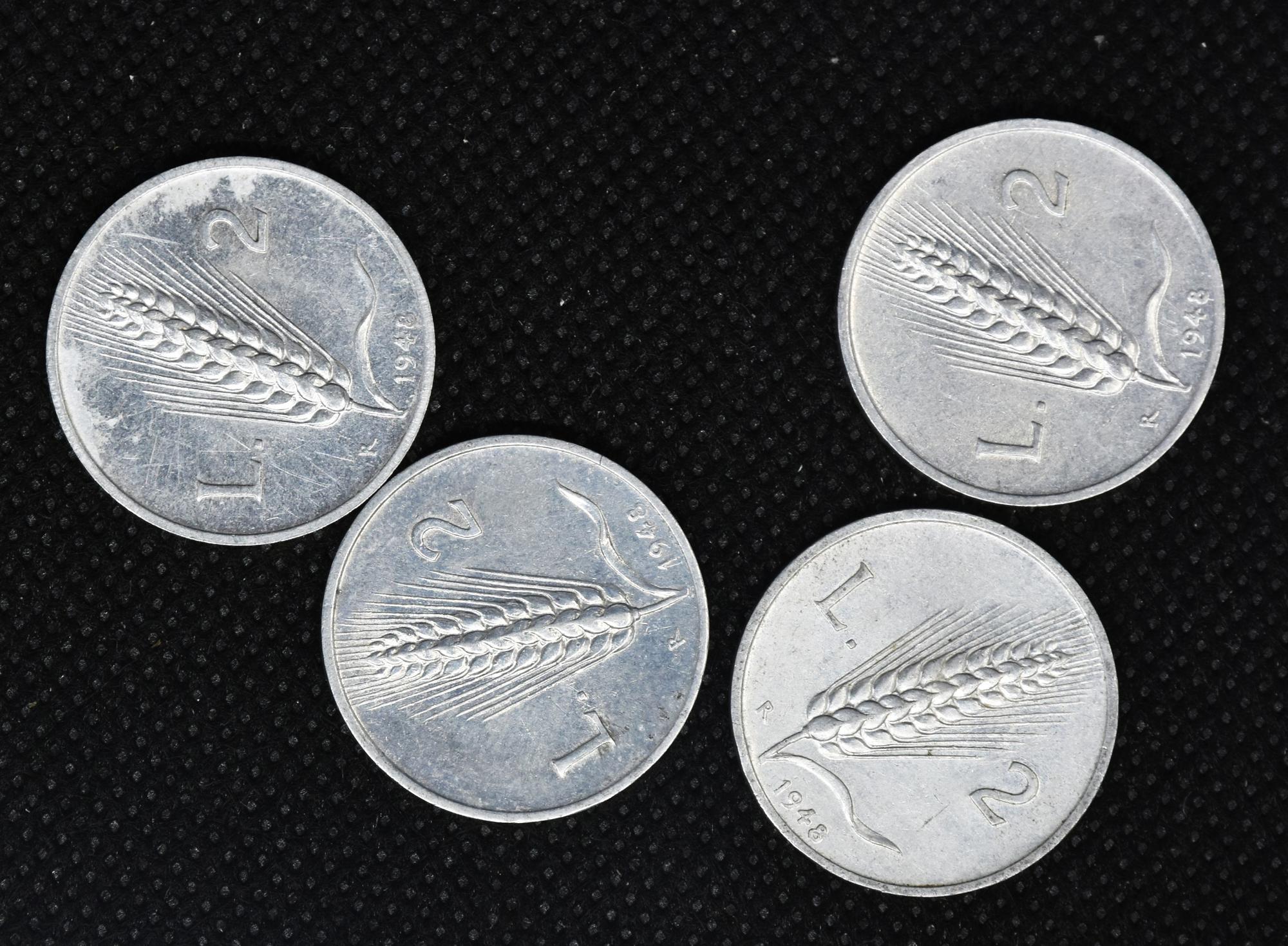 Precedente Lotto 117 Successivo Livebid - Via Tiziano Vecellio 34/D, 10126 Torino MONETE DEL MONDO E ITALIANE Sessione Unica giovedì 23 giugno 2022 ore 21:00 (UTC +01:00) LOTTO DI 4 MONETE REPUBBLICA ITALIANA da 2 lire 1948 LOTTO DI 4 MONETE REPUBBLICA ITALIANAda 2 lire 1948