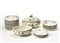 Part of table service of the series "Ermione". Manufacture of Richard - Ginori S.Cristoforo, Milan, 1930s. Consisting of ten soup plates, six saucers, twenty-five flat plates, a tureen with lid and a salad bowl. Marked under the base and with numerals. (slight defects)