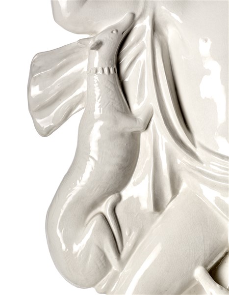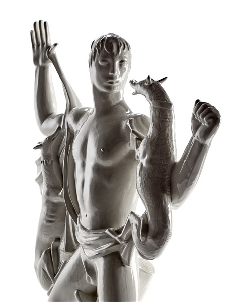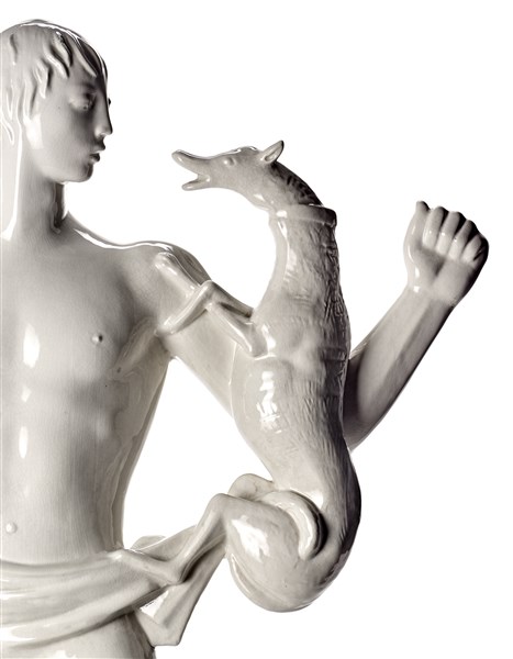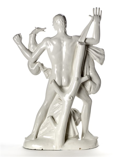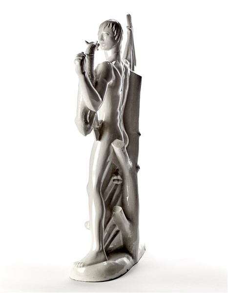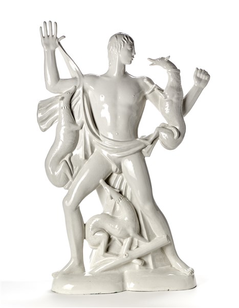 Sculpture. Manufacture of Società Ceramica Italiana, Laveno, 1956. White-glazed strong earthenware. Marked Lavenia and with numeral 2-53 in green under the base. (h 90 cm.) (slight defects)