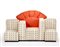 Sofa model "Tramonto a New York". Produced by Cassina, Meda, 1980. Upholstery in red fabric for the back-sun and in crème fabric with squares in shades of beige for the seats-skyscrapers. (232x128x102 cm.) (minor modifications and defects)