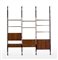 Three-module bookcase with open shelves, drawers and cabinets model "Giraffa". Produced by Arform, Italy, 1960s. Teak wood and metal structure. (260x288x40 cm.) (slight defects)