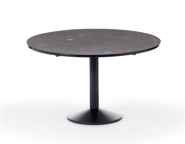Table model "TL30". Produced by Poggi, Pavia, 1961. Teak-veneered top, black painted steel base and structure. (h 74 cm.; d 126 cm.) (slight defects)