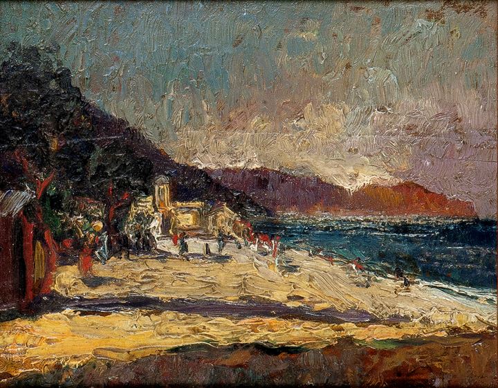 AJMONE LIDIO Coggiola (VC) 1884 - 1945 Andezeno (TO) "Marina" 16,5x20 olio su...
