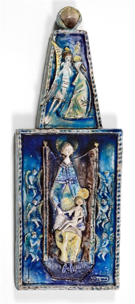 Polychrome glazed terracotta tile. Florence, 1950s/1960s. Signed and labeled on the back. (h 76.5 cm.) (slight defects)