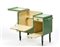 Carrellino bar razionalista in legno verniciato bianco e verde con stipo, casse
