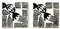 Two ceramic tiles decorated with abstract motifs glazed in black on a white background. Rome, 1951-1952. (20x20 cm.) (slight defects)