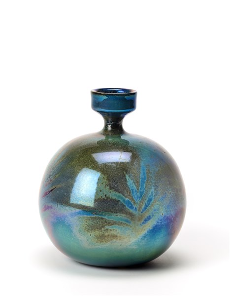 Ivo Sassi Vaso bottiglia a corpo globulare in ceramica smaltata nei toni del ver