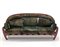 Divano a tre posti modello "Rancero". Produzione Frigerio, Desio, anni '70. Struttura in legno di mogano, cinghie in cuoio nero, cuscini in velluto verde. (cm 214x91,5x86) (lievi difetti)