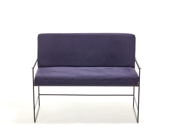 Divanetto da esterno con struttura in ferro verniciato nero e cuscini rimovibil