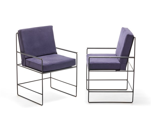 Coppia di poltrone da esterno con struttura in ferro verniciato nero e cuscini