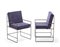 Coppia di poltrone da esterno con struttura in ferro verniciato nero e cuscini rimovibili rivestiti in tessuto blu. Italia, anni '80. (cm 62x93x61) (lievi difetti)