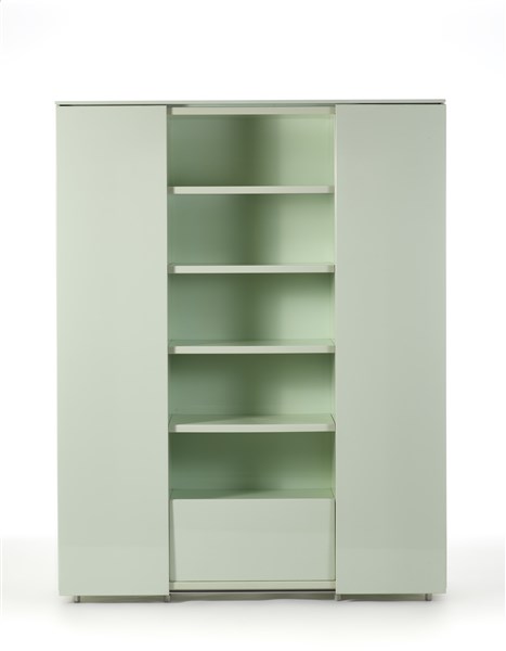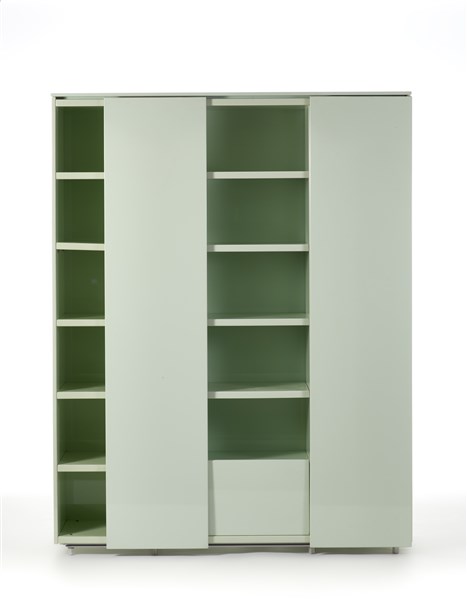 Mobile/libreria modello "Quadrante". Produzione Xilitalia, Italia, anni '80. Laminato laccato verdino, piedini in metallo. (cm 158x203x44) (lievi difetti)