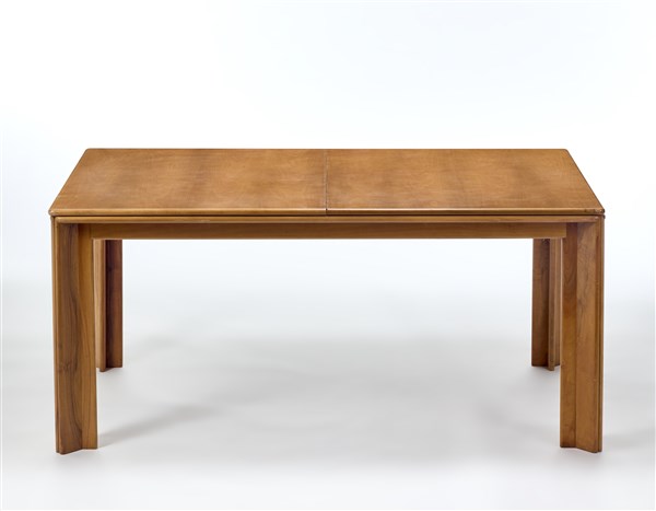 Tavolo modello "Mou". Produzione Molteni, Meda, anni '70. Legno massello, impiallacciato e bordato. (chiuso cm 160x72,5x95; aperto cm 255x72,5x95) (lievi difetti)