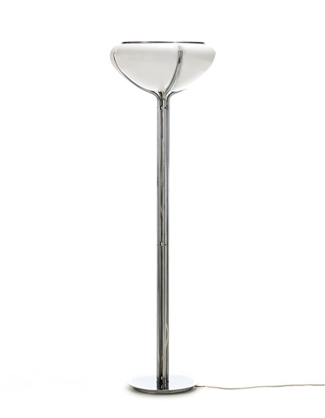 Lampada da terra modello "Quadrifoglio". Italia, 1974. Alluminio, metallo cromato, metacrilato bianco. (h cm 165) (lievi difetti)