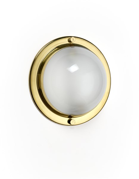 Plafoniera/applique modello "LSP6 Tommy". Produzione Azucena, Milano, 1965. Struttura in ottone lucidato, paralume in vetro smerigliato internamente. (d cm 32)