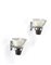 Coppia di lampade da parete modello "LP5 Coppa Vetro Aperta". Produzione Azucena, Milano, 1954. Diffusore in vetro pressato, struttura in alluminio e metallo verniciato grigio. Marchio a incussione. (h cm 11,5; d cm 13) (lievi difetti e piccole mancanze)