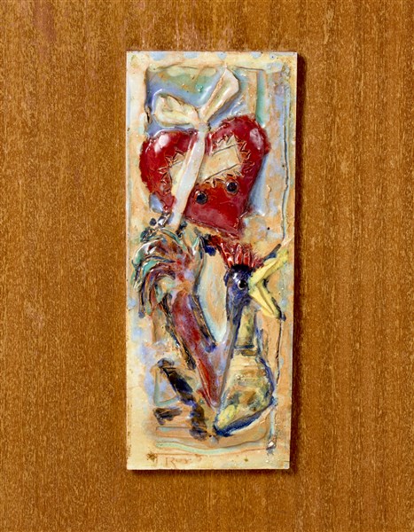 Sideboard in the style of Ico Parisi in veneered wood with doors decorated with ceramics by Teodoro Russo. Italy, 1950s. (266x103.5x46 cm.) (slight defects)