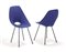 Coppia di sedie modello "Medea". Produzione Fratelli Tagliabue, Italia, 1955ca. Ferro verniciato nero, compensato curvato di teak, rivestimento in tessuto blu. (cm 46x83x52) (lievi difetti)