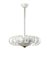 Suspension lamp. Murano, 1930s/1940s. Transparent colorless blown glass with twisted stem, fourteen leaves in crystal and bubble glass, ribbed glass diffuser cup with bubbles. Brass rosette. (h 92 cm.) (slight defects)