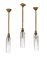 Tre lampade cilindriche a sospensione in origine collocate sopra il bancone bar di un arredo interamente disegnato da Gio Ponti. Italia, 1958ca. Vetro soffiato lavorato alla mola con effetto bugnato a diamante, cordone di sostegno a spirale con fiocco realizzato a mano in seta. (h cm 111) (lievi difetti)