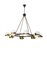 Lampada a sospensione a otto luci con struttura in metallo verniciato nero e ot