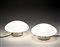 Pair of table lamps model "Magnolia". Produced by Quattrifolio, Milan, 1971. Base in chromed metal, diffuser in lattimo glass. (h 14.5 cm.; d 25 cm.)