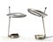 Lot of two table lamps with ashtray base and mobile lampshades. Probable Lumi production. Milan, 1970s. Black and nickel-plated painted metal, frosted glass diffusers. (h 53 cm.) (defects and losses)