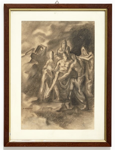 Studio per gruppo scultoreo. Roma, anni '30/'40. Matita e carboncino su carta. Firmato "A. BIAGINI" in basso a sinistra. (cm 31x21). In cornice.