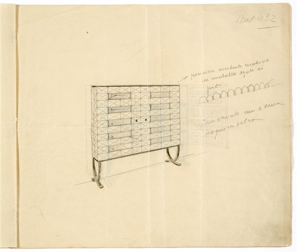 Paolo Buffa Lotto composto da un fascicolo contenente cinque fogli con disegni d