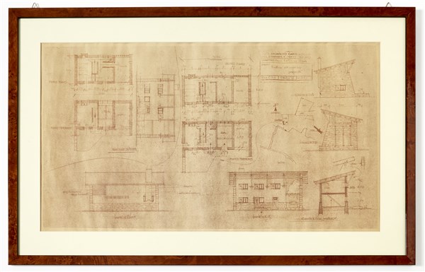 Heliocopy of the rustic entrance of Casa Cattaneo Agra. Turin, 1953. In frame. (cm in frame 83x52) (slight defects)