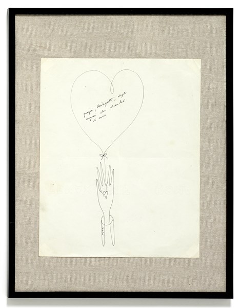 Gio Ponti "Mano e cuore" Disegno con dedica "grazie, Menegatti, degli auguri che