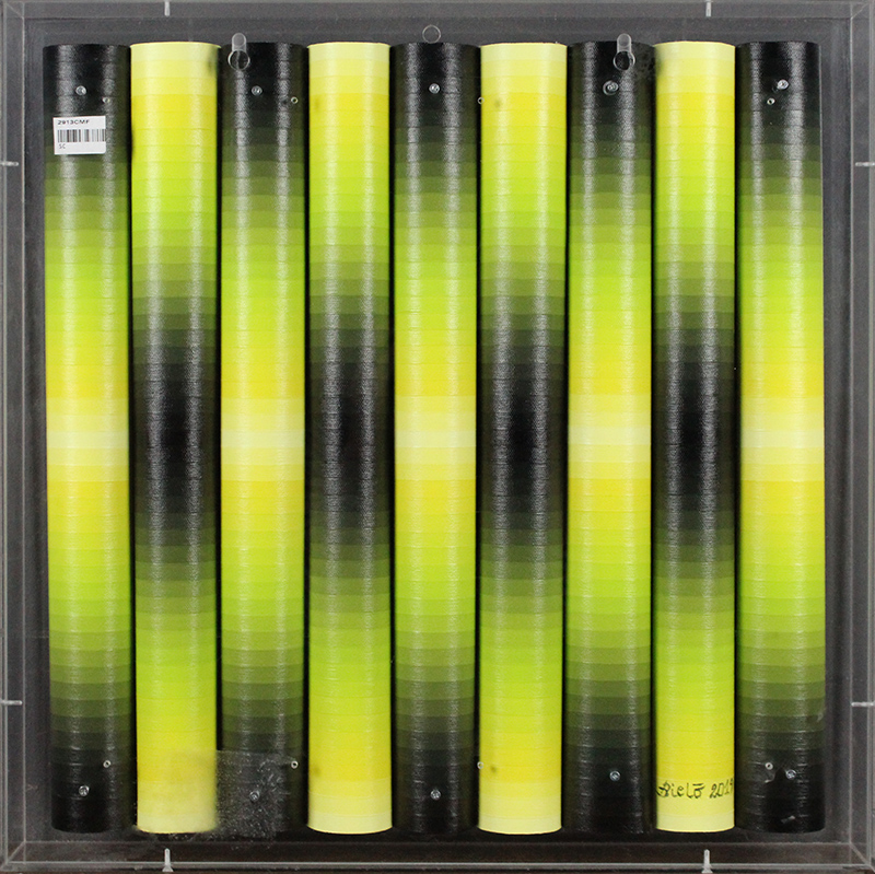 RAFFAELE BIELO', Senza titolo, 2019, Acrilico su rotoli di tela, Dim. 50x50, Opera accompagnata da autentica su foto dell'artista, Al verso datato e firmato, Opera con plexiglass