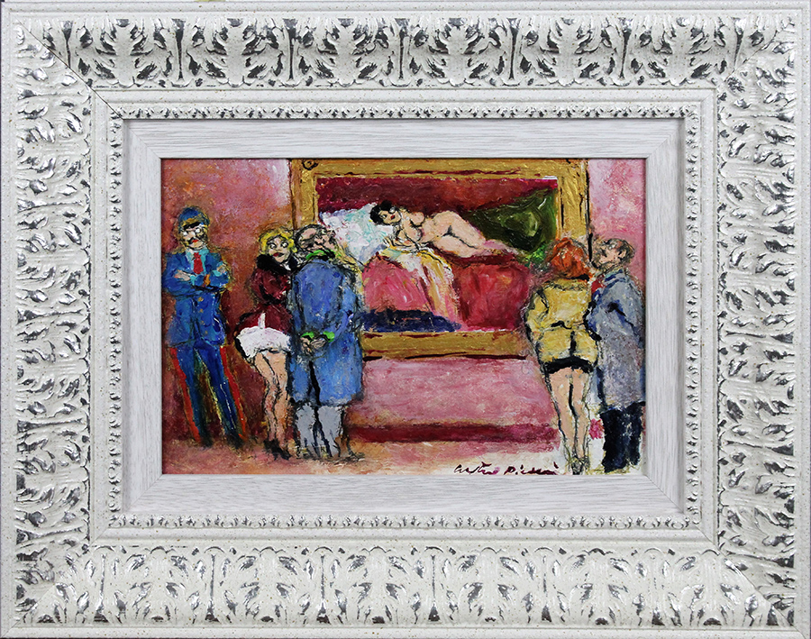 WALTER PIACESI, "Visita al museo", 2016, Olio su tavola, Dim. 20x30, Al verso: anno, titolo, tecnica e N° riferimento archivio: FBVVL/03692, Al fronte: firmato in basso a destra