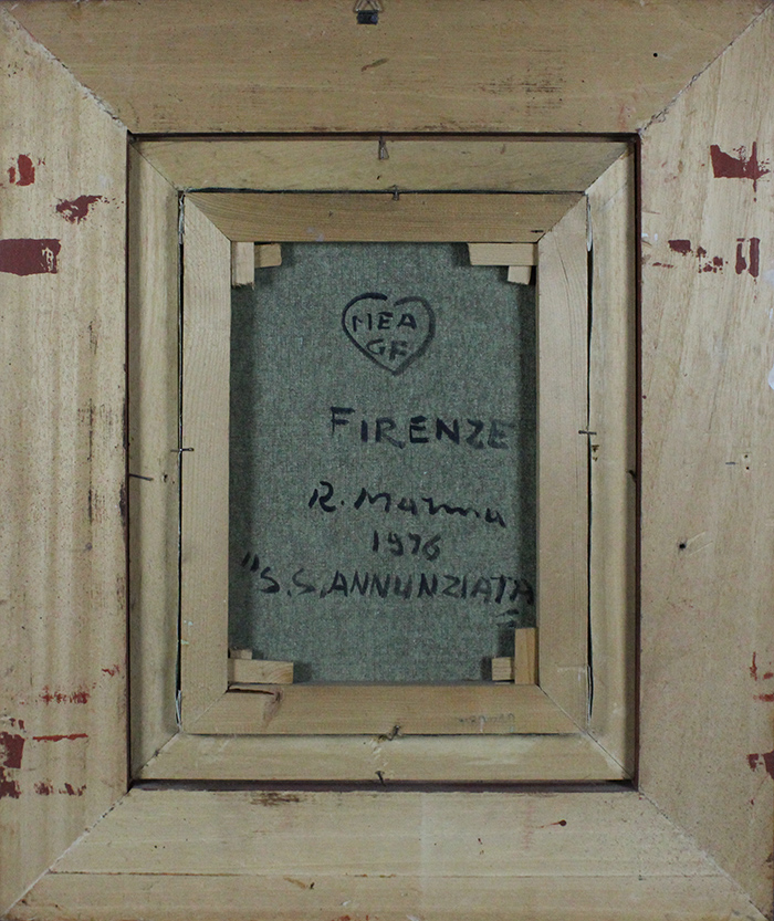 RODOLFO MARMA, "S.S. Annunziata",1976, Olio su tela, Dim. 40x30, Al verso: data, titolo, luogo e firma, Al fronte: datato e firmato in basso a destra, Opera con cornice