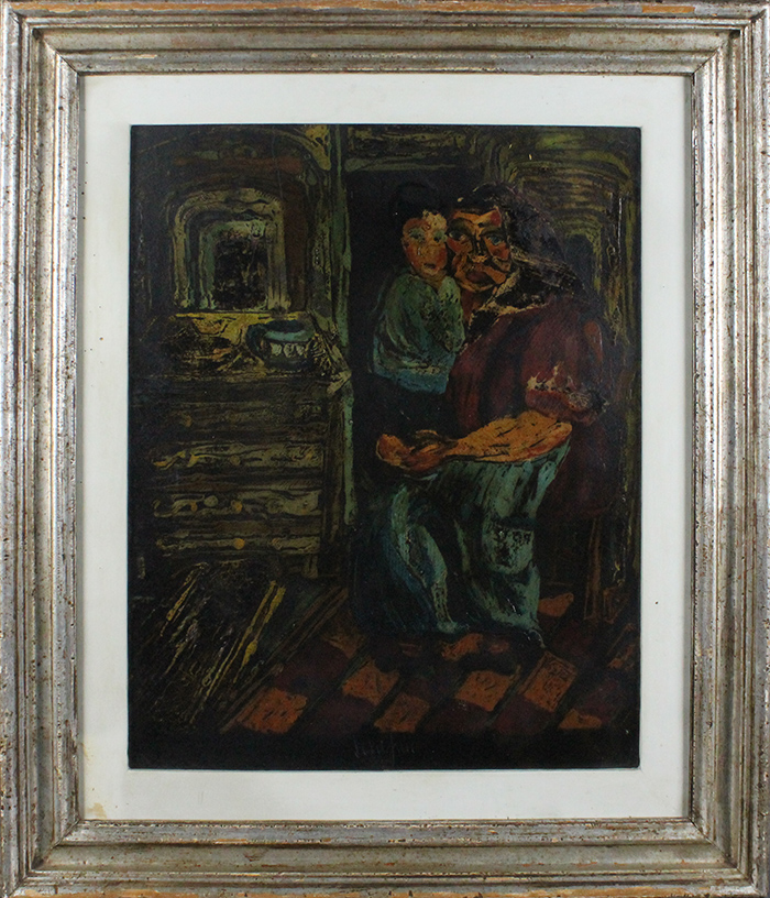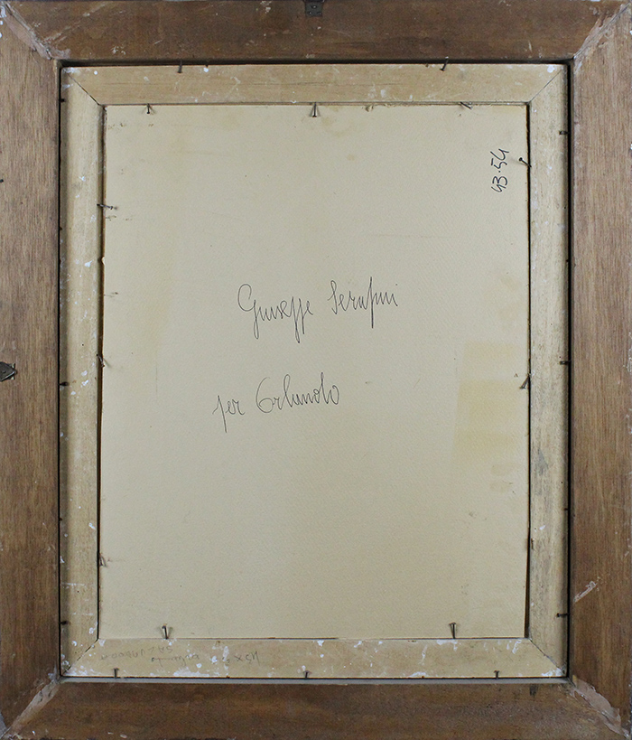 GIUSEPPE SERAFINI, Senza titolo, Tecnica mista su carta, Dim. 54x43, Al verso: firma e dedica ad personam, Al fronte: firmato in basso al centro, Opera con cornice