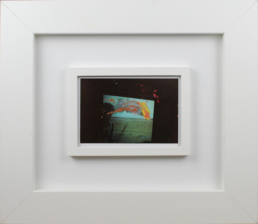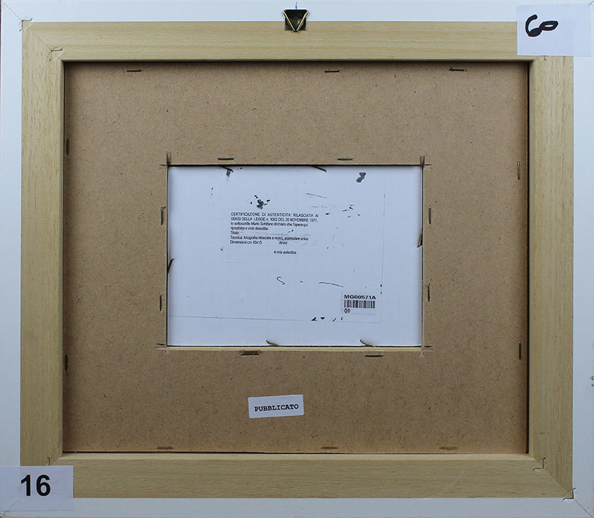Mario Shifano, Cronaca, 1990-97, Foto ritoccata a smalto, Esemplare unico, Dim. 10x15, Opera archiviata presso la Fondazione Mario Schifano " Archivio Generale dell' Opere di Mario Schifano " con n° archivio: F90-97/6015, il 2 agosto 2007, Opera pubblicata sul catalogo " Mario Schifano fotografie ritoccate " a pag.21 volume I, Al verso: firma "Schifano", Opera con cornice