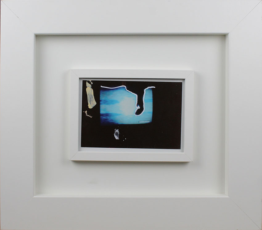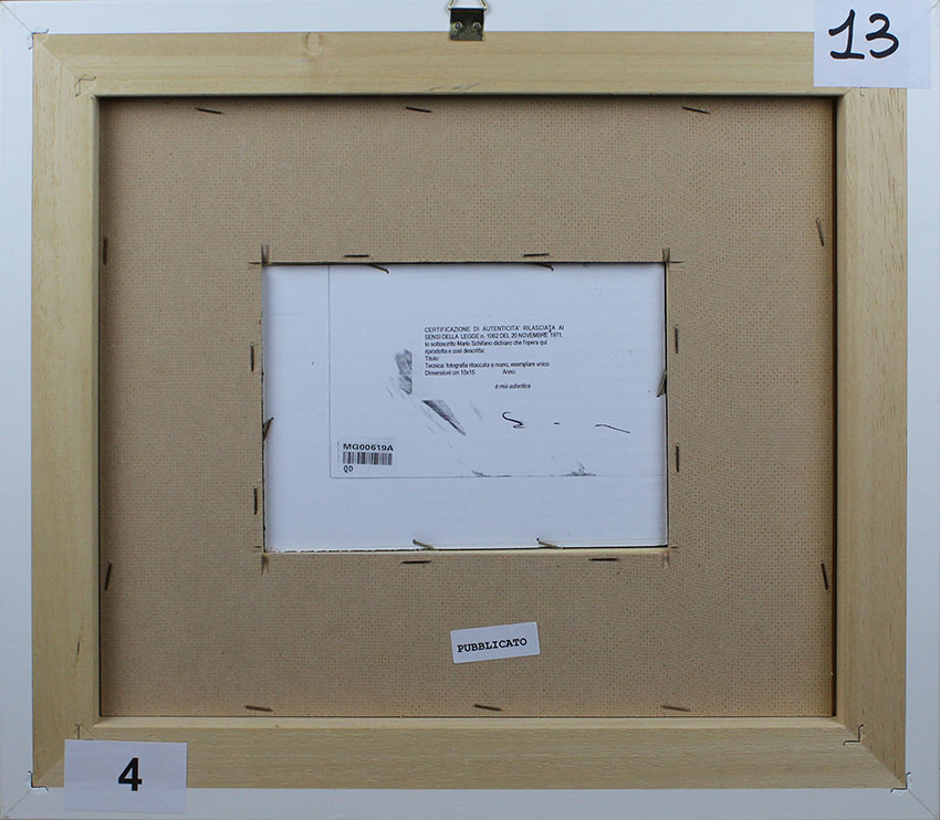 Mario Shifano, La forma nel cielo , 1990-97,Foto ritoccata a smalto, Esemplare unico, Dim. 10x15, Opera archiviata presso la Fondazione Mario Schifano " Archivio Generale dell' Opere di Mario Schifano " con n° archivio: F90-97/6106, il 30 agosto 2007, Opera pubblicata sul catalogo " Mario Schifano fotografie ritoccate " a pag.33 volume I, Al verso: firma "Schifano", Opera con cornice