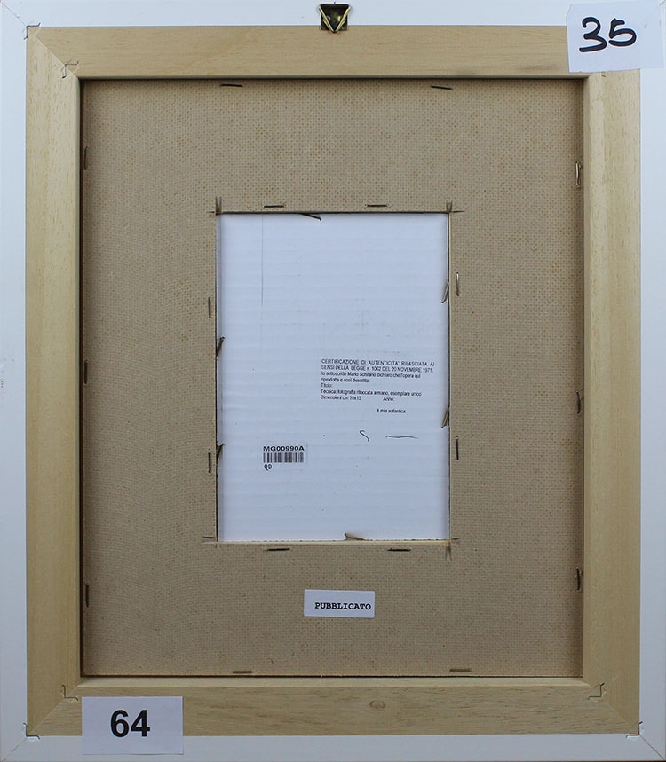 Mario Shifano, Doppio monitor, 1990-97, Foto ritoccata a smalto, Esemplare unico, Dim. 10x15, Opera archiviata presso la Fondazione Mario Schifano " Archivio Generale dell' Opere di Mario Schifano " con n° archivio: F90-97/7065, il 12 ottobre 2007, Opera pubblicata sul catalogo " Mario Schifano fotografie ritoccate " a pag.125, volume I, Al verso: firma "Schifano", Opera con cornice