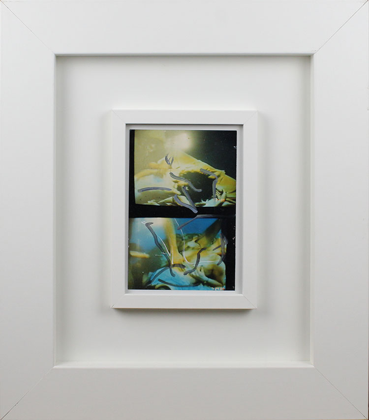 Mario Shifano, Erotika, 1990-97, Foto ritoccata a smalto, Esemplare unico, Dim. 15x10, Opera archiviata presso la Fondazione Mario Schifano " Archivio Generale dell' Opere di Mario Schifano " con n° archivio: F90-97/7007, il 12 ottobre 2007, Opera pubblicata sul catalogo " Mario Schifano fotografie ritoccate " a pag.115, volume I, Al verso: firma "Schifano", Opera con cornice
