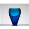 Vaso in vetro soffiato sommerso di color blu di Prussia, corpo ovale schiacciato, bocca piana.