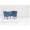 Divano vis a vis a due posti modello "Progetti", struttura in faggio massiccio con gambe laccate blu, braccioli in pau ferro lucidato; imbottitura sedile e schienale in poliuretano espanso indeformabile e fibra; rivestimento in tessuto color blu.