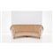 Grande divano curvato a quattro posti, struttura in legno con imbottitura e rivestimento in tessuto di velluto beige, piedi in legno.