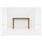 Consolle in ottone pieno lucido, gamba cilindrica, angoli arrotondati piano in vetro.